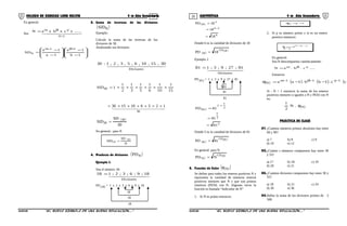 1. El documento presenta conceptos básicos sobre números enteros como números primos, compuestos, primos entre sí y sus propiedades. 2. Incluye fórmulas para calcular divisores, suma de divisores, suma de inversas de divisores, producto de divisores y la función de Euler. 3. Contiene 26 problemas de práctica relacionados con estos conceptos numéricos.