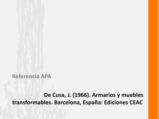De Cusa,J. (1966). Armarios y muebles