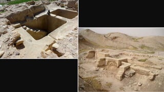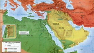 1) El documento habla sobre la geografía y arqueología bíblica, resumiendo pasajes del Antiguo Testamento y presentando evidencias arqueológicas que los respaldan.