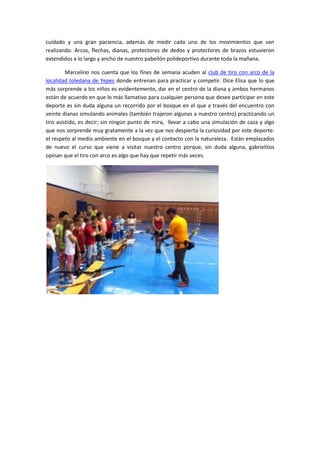 Marcelino García Rincón y Elisa García Rincón son hermanos que practican el tiro con arco a nivel competitivo. Comenzaron practicándolo como hobby y ahora son campeones regionales en varias ocasiones. Actualmente se están preparando para competir en el campeonato nacional, donde Elisa quedó en cuarta posición el año pasado. Visitaron una escuela para enseñar a los estudiantes sobre este deporte y despertar su interés.