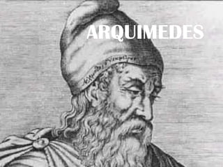 Arquímedes fue un matemático, físico, ingeniero e inventor griego que vivió entre los años 287 a.C. y 212 a.C. Descubrió el principio de Arquímedes, que establece que todo cuerpo sumergido en un fluido experimenta un empuje igual al peso del fluido desplazado. El rey Hierón II le pidió que determinara si la corona de oro que le habían hecho era de oro puro. Arquímedes se dio cuenta de que podía medir el volumen de la corona midiendo el volumen de ag