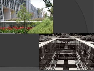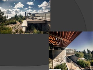 El documento presenta información sobre 4 arquitectos: Frank Gehry, Alberto Kalach, Carlos Pedroza y una reflexión sobre el semestre. Detalla la biografía, obras principales y estilo arquitectónico de cada uno. Frank Gehry es conocido por sus innovadoras formas. Alberto Kalach ha tenido éxito internacional con obras integradas a la naturaleza. Carlos Pedroza es arquitecto local que ha trabajado en diversos proyectos en San Luis Potosí utilizando materiales regionales.