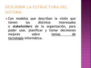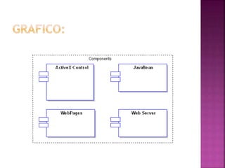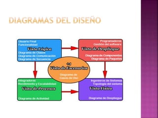 El documento describe los diferentes niveles de diseño de un sistema de información, incluyendo la arquitectura, los componentes, las vistas y las capas. Define la arquitectura de tres capas (presentación, negocio y datos) y describe las vistas lógica, de implementación y física. También cubre temas como componentes de software, diagramas de clases y desarrollo basado en componentes.