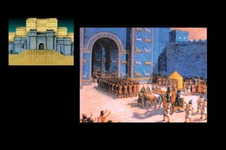 Mesopotamia fue la cuna de la arquitectura antigua, donde surgieron las primeras ciudades planificadas como Ur. Los materiales utilizados fueron la arcilla y el adobe debido a la escasez de piedra y madera. Los principales tipos de edificios fueron los templos, zigurats y palacios reales. Los templos evolucionaron en planta y estaban dedicados al poder divino, mientras que los zigurats eran torres de varios niveles con forma de pirámide truncada dedicadas a las deidades mesopotámic