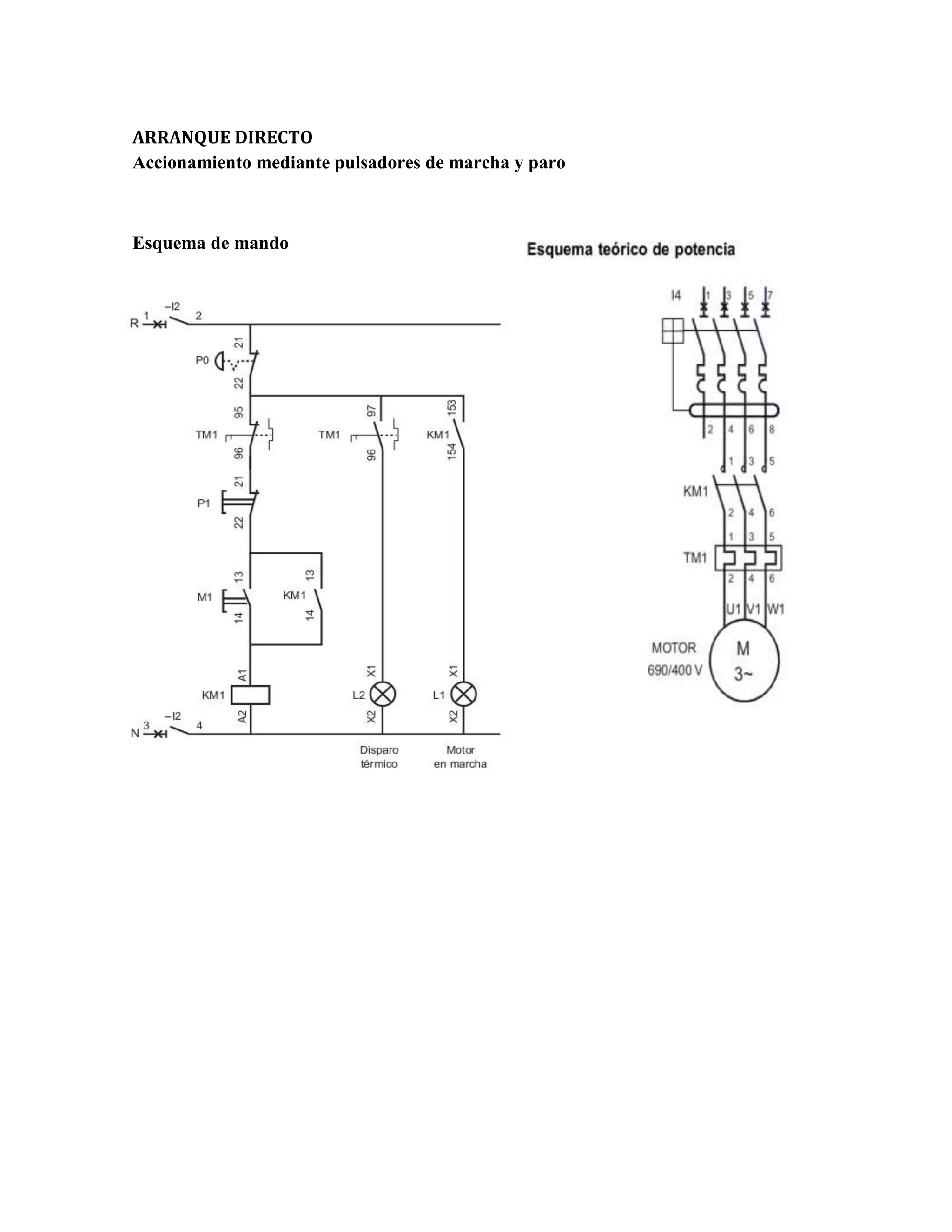 Este documento describe un sistema de arranque directo para maquinaria que utiliza pulsadores de marcha y paro para controlar el esquema de mando. El sistema de control es analógico y estándar de acuerdo con la norma USS.