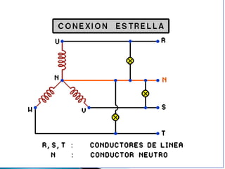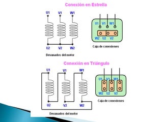Este documento describe el método de arranque estrella-triángulo para motores eléctricos. Comienza conectando el motor en estrella, donde la corriente de arranque es más baja, luego cambia a la conexión triángulo para aplicar la tensión completa. Esto permite arrancar motores grandes de forma suave reduciendo la corriente inicial.