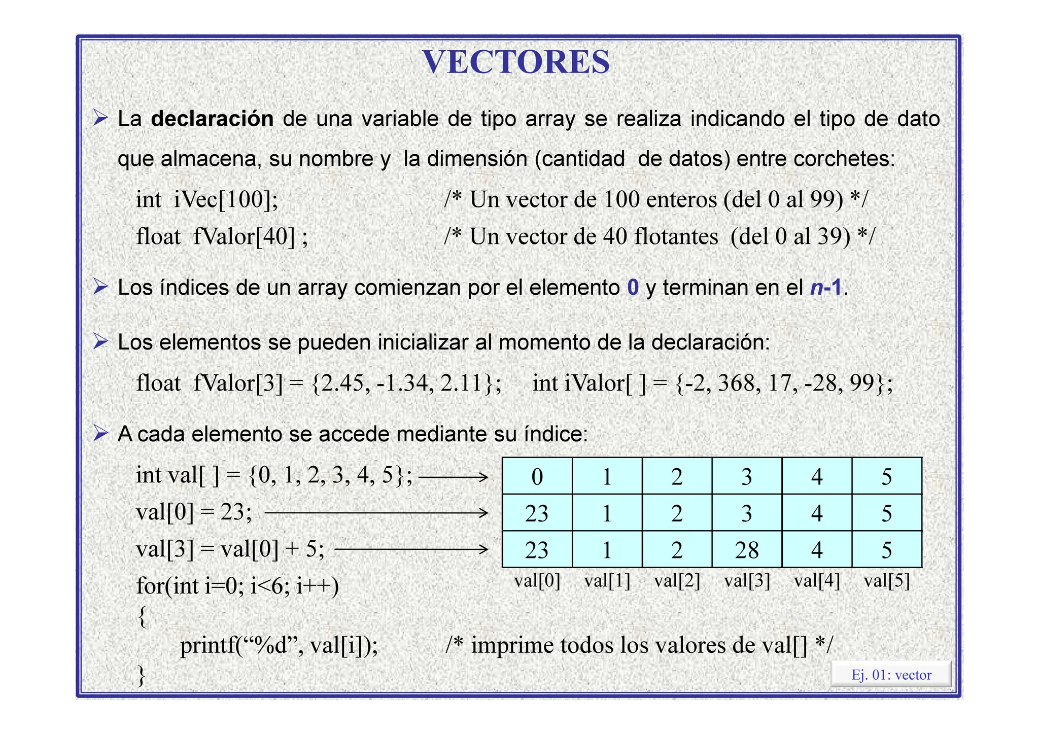 int iVec[100]; /* Un vector de 100 enteros (del 0 al 99) */