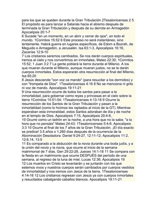 El documento presenta 15 diferencias entre el Rapto (Arrebatamiento) de la Iglesia y la Segunda Venida de Cristo. Discute que el Rapto ocurrirá antes de los 7 años de la Gran Tribulación para llevar a los creyentes al cielo, mientras que la Segunda Venida ocurrirá después de la Gran Tribulación para establecer el reino milenial de Cristo en la tierra. También analiza citas bíblicas que apoyan estas posiciones sobre los eventos escatológicos finales.