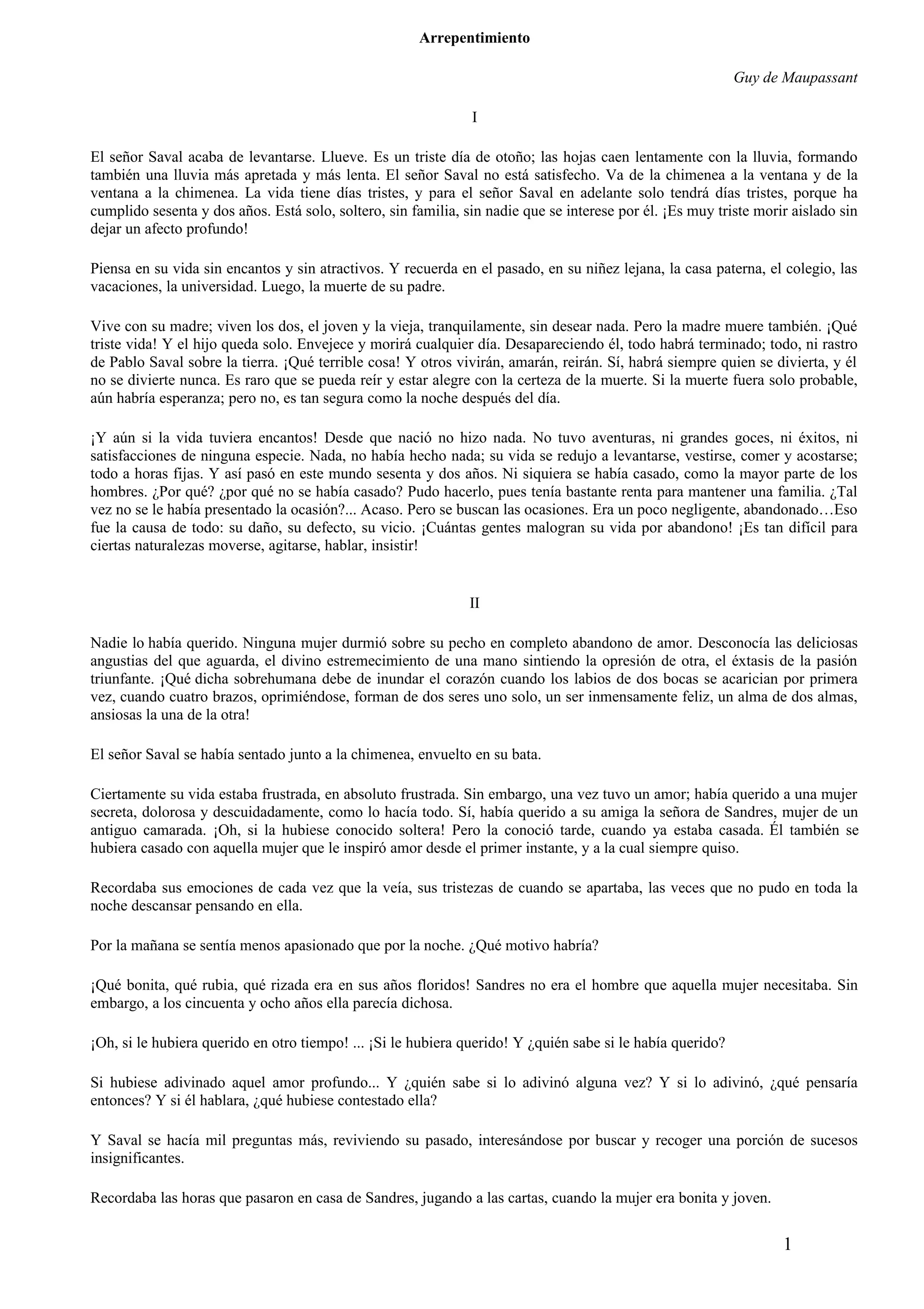 El señor Saval, de 62 años y solo, recuerda su vida sin amor ni aventuras. Piensa en la señora de Sandres, de quien estuvo enamorado hace 30 años. Va a verla y le pregunta si sabía de sus sentimientos. Ella dice que sí, y que probablemente habría cedido si él hubiera sido más osado durante un paseo que compartieron. Aterrado por esta revelación, Saval sale corriendo y llora bajo los árboles donde tuvieron ese paseo, arrepentido de no haber actuado.