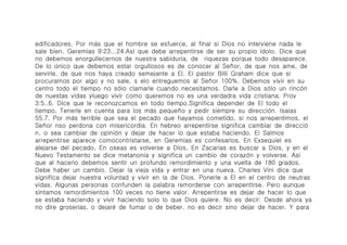 1) El pastor habla sobre la importancia del arrepentimiento y el perdón para alcanzar la verdadera felicidad. 2) Explica que debemos arrepentirnos de depender de nosotros mismos en lugar de Dios, y también de nuestra desobediencia al pasado. 3) Describe cómo todo el pueblo de Ninive se arrepintió tras el mensaje de Jonás, logrando evitar el juicio de Dios. El pastor concluye que Dios valora mucho a la humanidad y no quiere que nadie se pierda.