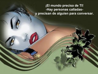 ¡El mundo precisade TI! -Hay personas calladas- y precisan de alguien para conversar.
