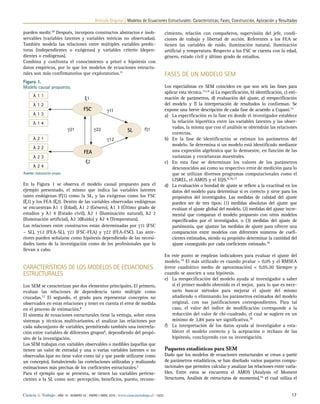 Este documento describe los modelos de ecuaciones estructurales, incluyendo sus características, fases de construcción y aplicación. Explica el análisis factorial exploratorio y confirmatorio como parte de la construcción de un modelo. A modo de ejemplo, presenta un estudio que evalúa el impacto de factores socioculturales y ergoambientales en la satisfacción laboral de profesores universitarios en México. El modelo resultante detalla las variables más y menos significativas y no rechaza cuatro hipótesis específicas.