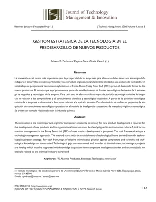 Este documento presenta un método para la gestión estratégica de la tecnología en la fase previa al desarrollo formal de nuevos productos. El método comienza con el establecimiento de frentes tecnológicos derivados de la estrategia de negocios y tecnológica de la empresa. Para cada frente tecnológico, se utilizan mapas de posición tecnológica relativa de la empresa en relación a competidores y conocimiento disponible. A partir de estos mapas, se determinan brechas tecnol