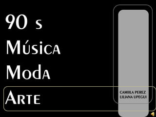 Este documento resume la música, moda y arte de los años 90. En cuanto a la música, resurgió el espíritu punk de los 70 y se popularizaron géneros como el rock alternativo, rap, rock, electro, break dance, pop británico y techno. En moda, prevaleció la búsqueda de individualidad a través de estilos como grunge, hip hop y la moda de los colores neón. El arte callejero también floreció durante esta década a través de artistas como Banksy, conocido por sus obras de arte ur