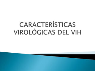 El VIH-1 es el agente causante del SIDA, el cual se ha reconocido por 30 años y se originó hace 100 años a través de la transmisión de chimpancés a humanos en África central. Aunque existen tratamientos efectivos, todavía no hay una vacuna debido a que la envoltura del VIH dificulta su prevención. El VIH se transmite principalmente a través del contacto sexual y posee un reservorio de células infectadas latentemente que dificulta su erradicación.