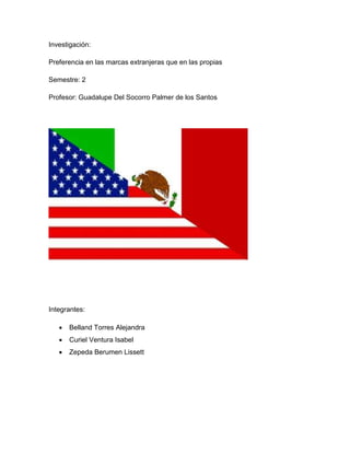 El objetivo de la investigación fue evaluar los productos mexicanos para saber por qué se prefieren los extranjeros. Se compararon las estrategias de publicidad de empresas extranjeras y mexicanas, e identificaron las causas por las que los consumidores mexicanos compran más marcas extranjeras. Los resultados mostraron que la publicidad influye en las decisiones de compra de los consumidores. Se recomienda que los consumidores revisen dónde se fabrican los productos antes de comprarlos y recuerden que comprar productos mexicanos apoya