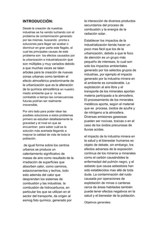 La contaminación excesiva generada por las grandes industrias ha causado un continuo deterioro de la sociedad y el medio ambiente. Los vertidos industriales han contaminado recursos hídricos y afectado la vida acuática. Si bien la industrialización es necesaria para el desarrollo, también debe minimizarse su impacto ambiental mediante el cumplimiento de normas ecológicas, la reubicación de plantas industriales, y el reciclaje de desechos.