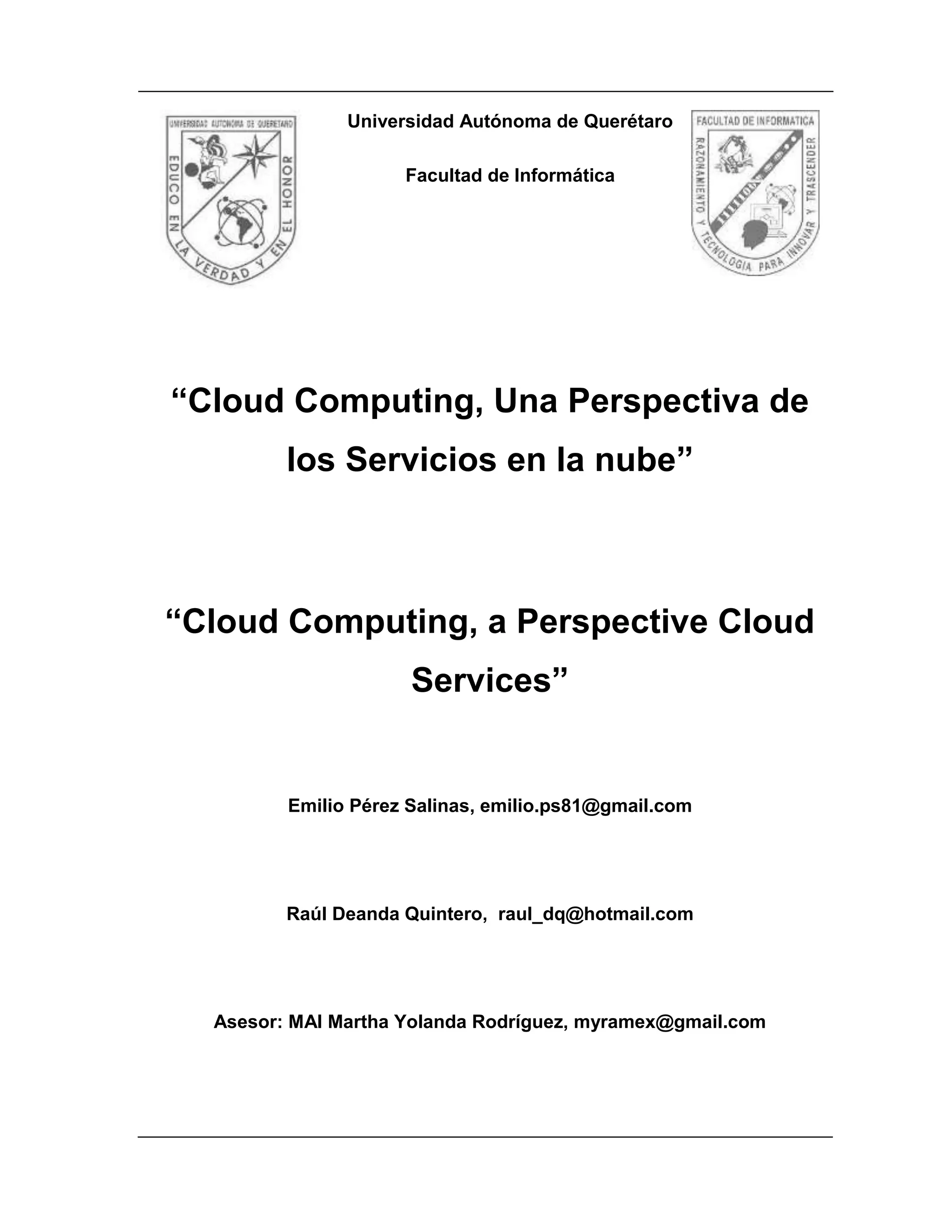 El cloud computing es un modelo de prestación de servicios de información que permite a las empresas optimizar recursos y costos sin necesidad de invertir en infraestructura propia. Este modelo facilita el acceso a aplicaciones y servicios en línea, incrementando la eficiencia y reduciendo gastos operativos. Aunque ofrece múltiples ventajas, como flexibilidad y pago por uso, también presenta desafíos como la seguridad de datos y la disponibilidad de servicios.