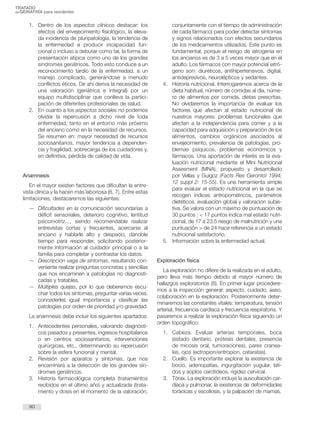 El documento describe la valoración geriátrica integral, un proceso de evaluación clínica, funcional, mental y social del paciente geriátrico. La valoración busca detectar problemas de salud, necesidades y capacidades del anciano para desarrollar un plan de tratamiento interdisciplinario que mejore su calidad de vida y grado de independencia. Incluye entrevistas, exámenes físicos y escalas de evaluación de funciones básicas, instrumentales y cognitivas.