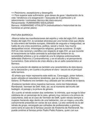 El documento describe el estilo artístico y cultural del Barroco que se desarrolló en Europa entre los siglos XVII y XVIII. Explica las características generales del Barroco, incluyendo su desarrollo en la pintura, arquitectura y otros campos. También analiza la difusión del estilo Barroco en países europeos como España, Francia e Inglaterra durante este período.