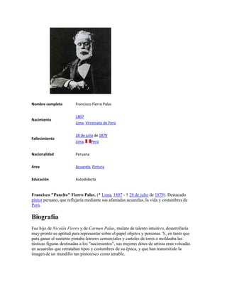 Jorge Castilla-Bambarén es un importante artista peruano figurativo y abstracto que ha exhibido sus pinturas en varias Bienales Internacionales. Su estilo se nutre de fuentes como el expresionismo alemán, el arte prehispánico y el arte africano y oceánico. Alejandro Lira Lira fue un abogado, político y académico chileno que se desempeñó como ministro de Guerra y Marina y fue diputado representando al partido Conservador. Pancho Fierro fue un pintor peruano autodid