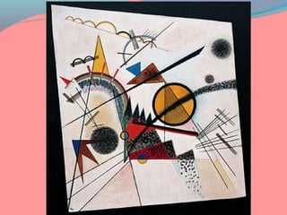 La abstracción en el arte se refiere a la acción de separar las cualidades de un objeto, permitiendo a los artistas expresar su subjetividad y emociones a través de colores y formas sin representar objetos reales. Wassily Kandinsky es uno de los principales representantes de esta corriente, promoviendo la idea de que la pintura debe comunicar el espíritu y los estados de ánimo del artista. La pintura abstracta puede dividirse en expresionista y geométrica, donde se busca la belleza en la forma y el color, prescindiendo de elementos figurativos.