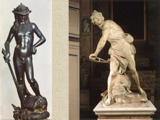 El Barroco fue un estilo artístico que dominó entre los siglos XVII y XVIII. Se caracterizó por lo irregular, complejo y dinámico, en contraste con el Renacimiento. Los artistas barrocos sirvieron para propagar las ideas de la Contrarreforma católica y el poder de las monarquías absolutas a través de edificios religiosos fastuosos, palacios reales y representaciones de milagros y mártires.