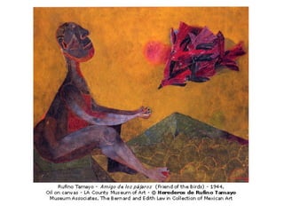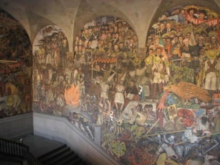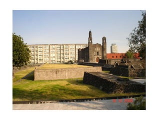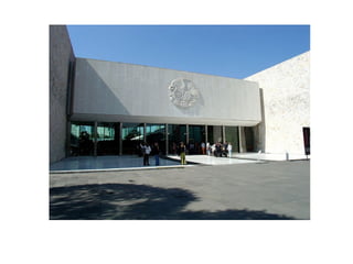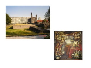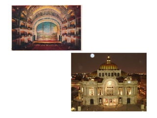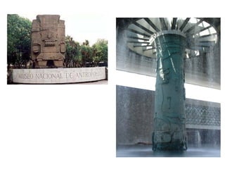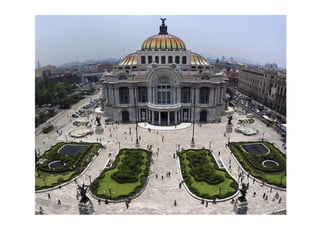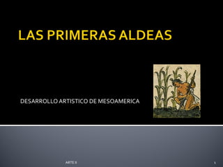 El documento describe el desarrollo artístico de las culturas mesoamericanas desde los olmecas hasta los toltecas. Resalta los principales sitios arqueológicos como Teotihuacán, Monte Albán, Mitla y Tula, y describe la arquitectura, escultura, cerámica y otras artes producidas por estas culturas prehispánicas.