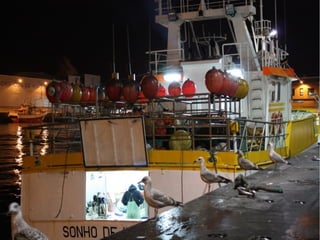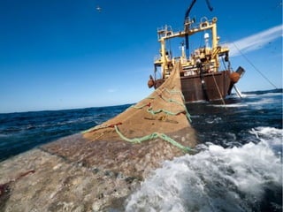 Este documento describe tres métodos principales de pesca: arrastre, cerco y palangre. La pesca de arrastre es la única forma de garantizar un suministro accesible de pescado demersal como la merluza, el rape o el gallo. La pesca de cerco suministra pescado fresco de pequeñas especies pelágicas como la sardina, el jurel o la caballa. El palangre es altamente selectivo y se utiliza principalmente para capturar el pez espada, la quella y el marrajo con palangre de super