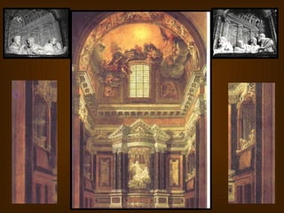 El documento resume las características generales del arte barroco en arquitectura, escultura y pintura. Destaca la importancia de Bernini y Borromini en la arquitectura barroca italiana, con obras como la Basílica de San Pedro. También resalta figuras como Caravaggio en la pintura italiana y Gregorio Fernández en la escultura española.