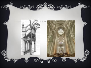 Este documento resume los principales aspectos del arte gótico, incluyendo su arquitectura, escultura, pintura y literatura. El arte gótico surgió en Europa a finales del siglo XII y se caracterizó por el uso de bóvedas de crucería ojival, arcos apuntados y contrafuertes. En arquitectura, destacan las catedrales góticas como lugares de culto. La escultura gótica se enfocó en temas naturalistas y narrativos. En pintura, destacan los vitrales, frescos