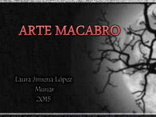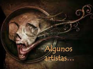 El documento presenta obras de arte macabro y surrealista de varios artistas como Mark Ryden, Natalie Shau y Yuka Yamaguchi que exploran temas oscuros y repulsivos a través de muñecas tristes e ilustraciones que contrastan lo infantil con lo grotesco. También menciona al escritor de terror H. P. Lovecraft y la película bizarra The Human Centipede sobre un científico que desea realizar un experimento humano.