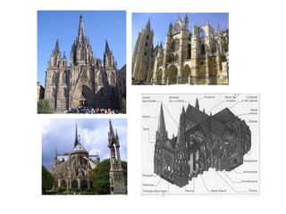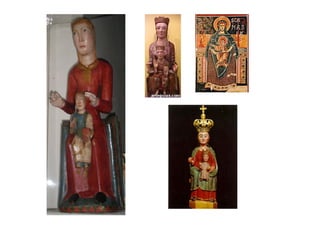 El documento describe el arte románico en Europa entre los siglos XI y XII. Se caracterizó por ser un arte religioso que se extendió de forma internacional gracias a los monjes benedictinos, peregrinos y cruzados. Las iglesias románicas tenían grandes muros de piedra, arcos de medio punto, bóvedas de cañón y pocas ventanas. Representaban escenas bíblicas a través de la escultura y pintura para educar al pueblo analfabeto.