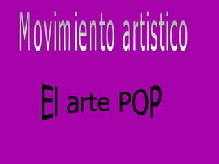 El arte pop surgió en 1954 cuando Lawrence Alloway acuñó el término para referirse a un arte popular y ciudadano que usaba imágenes cotidianas con un nuevo sentido crítico de la sociedad de consumo. El arte pop se caracteriza por ser figurativo, basado en grandes ciudades, y utilizar motivos no tradicionales para captar la atención. Recibió influencias del dadaísmo, la propaganda gráfica y la sociedad de consumo, y pasó por etapas de apogeo, expansión a Europa y foco en las condiciones urbanas