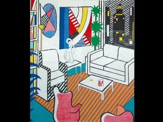 El documento proporciona una introducción al movimiento artístico del Pop Art, destacando sus orígenes en Gran Bretaña y Estados Unidos en la década de 1950 y describiendo algunos de sus principales exponentes como Andy Warhol y Roy Lichtenstein, quienes tomaron imágenes de la cultura popular como cómics, publicidad y celebridades para sus obras. También menciona al grupo español Equipo Crónica, pionero del Pop Art en España, que realizaba obras colectivas con un enfoque crítico de la sociedad.