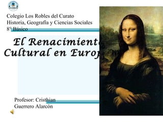 El documento resume el Renacimiento cultural en Europa entre los siglos XV y XVI. Este movimiento renovó las artes, la literatura, las ciencias naturales y sociales, fruto del humanismo y una nueva visión del hombre. Se destacan artistas como Botticelli, Leonardo da Vinci y Miguel Ángel, quienes revolucionaron la pintura y escultura a través de obras maestras como La Primavera, La Gioconda y La Piedad respectivamente.