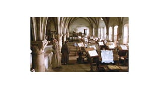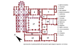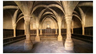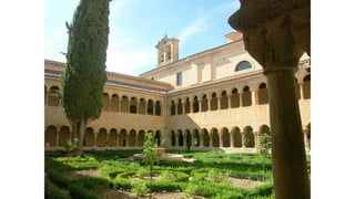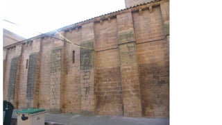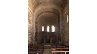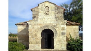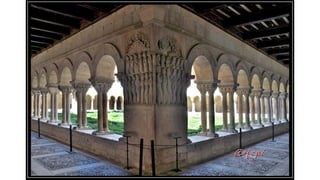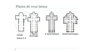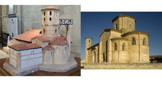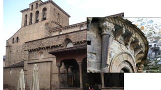 El documento describe las características del arte románico, haciendo énfasis en la arquitectura, escultura y pintura de este período. Explica que el arte románico se desarrolló entre los siglos XI y XII y tuvo como objetivo principal transmitir el mensaje cristiano a través de obras arquitectónicas como iglesias y monasterios, así como esculturas y pinturas. También identifica y analiza varias obras representativas del románico como San Vicente de Cardona, San Martín de Frómista y la Cated