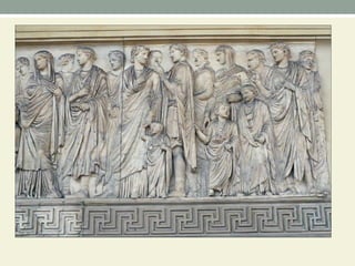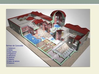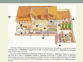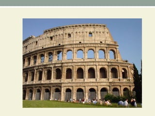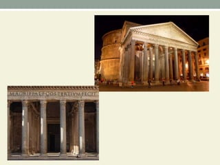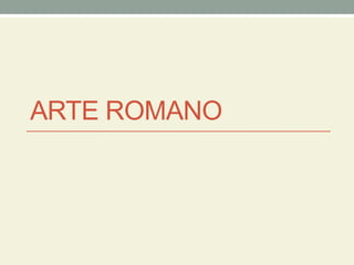 El arte romano estuvo influenciado por las culturas etrusca, griega e itálicas. Se caracterizó por su funcionalidad y pragmatismo. Los romanos adoptaron los órdenes arquitectónicos griegos pero prefirieron el jónico y corintio. Usaron materiales como piedra, ladrillo y hormigón. Edificios como el Panteón y la Maison Carrée muestran las técnicas romanas como el arco y la cúpula, así como su tendencia a combinar lo curvo y lo rectilíneo.