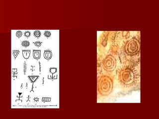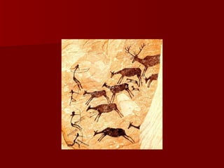 El documento describe el arte rupestre de diferentes períodos prehistóricos como el Paleolítico inferior, medio y superior. Explica que en el Paleolítico inferior se encontraban yacimientos al aire libre y lacustres, mientras que en el Paleolítico medio los yacimientos estaban en cuevas. En el Paleolítico superior, entre 15000-10000 a.C., se encuentran los lugares privilegiados del arte rupestre como las cuevas de Lascaux y Altamira, donde se representaban animales de forma naturalista con colores