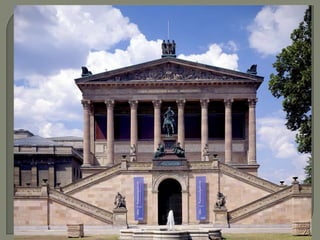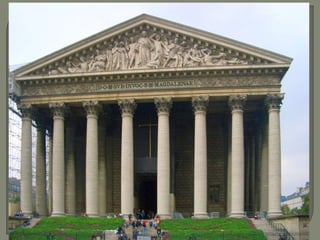Este documento resume los principales cambios sociales, económicos e intelectuales que tuvieron lugar en Europa durante el siglo XVIII, así como su influencia en las artes. La Ilustración cuestionó el Antiguo Régimen y promovió el neoclasicismo, que imitaba las formas clásicas y racionales. El neoclasicismo se manifestó en la arquitectura, la escultura y la pintura hasta el periodo napoleónico.