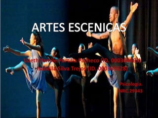 Este documento trata sobre las artes escénicas como talento. Define las artes escénicas como el estudio y práctica de expresiones como la danza, música, teatro, ópera y comedia. Explica que las artes escénicas se caracterizan por tener representaciones en un espacio destinado para el público y que exploran la artificialidad del arte.