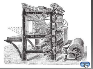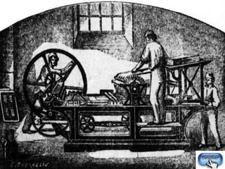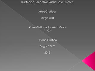 El documento describe la evolución histórica de las artes gráficas, desde las primeras formas de comunicación abstracta como los jeroglíficos y los ideogramas, hasta la invención de la imprenta por Johannes Gutenberg en el siglo XV. También explica técnicas gráficas antiguas como la xilografía y el grabado al buril, así como el desarrollo del papel en China.