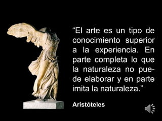 Aristóteles describió el arte como un tipo de conocimiento superior a la experiencia que completa lo que la naturaleza no puede elaborar e imita a la naturaleza. El arte requiere aprendizaje y habilidad técnica, pero también puede implicar la expresión de una visión particular del mundo. Las artes plásticas tradicionalmente incluyen dibujo, pintura, escultura y arquitectura, aunque con las nuevas tecnologías el término se ha ampliado a las artes visuales en general.