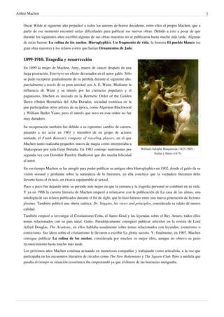 Arthur Machen fue un escritor y periodista galés conocido por sus relatos de terror fantástico. Nació en 1863 en Gales y creció en una familia cristiana. Trabajó como traductor y periodista y escribió obras como El gran Dios Pan y Los tres impostores. Tuvo dificultades para publicar durante años debido a escándalos, pero encontró el éxito en la vejez. Murió en 1947 siendo reconocido por su contribución a la literatura fantástica.