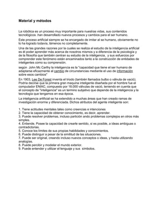 Este artículo analiza la inteligencia artificial (IA) desde una perspectiva filosófica, considerándola una rama de la computación que intenta imitar la inteligencia humana. Explica que la IA incluye características como el aprendizaje y la adaptación. También discute los posibles efectos negativos de la IA en el empleo humano a la luz de las tres leyes de la robótica de Asimov.