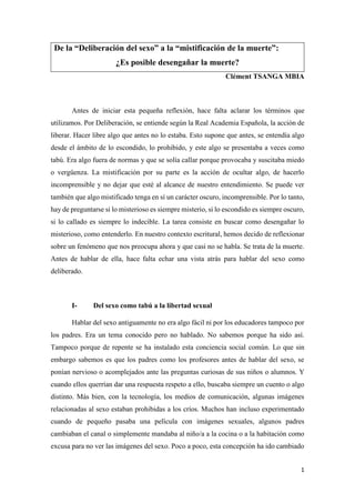 La muerte sigue siendo un tema tabú en la sociedad, a diferencia del sexo que ya no es un tabú. El documento analiza cómo la muerte se ha mantenido como un misterio que la gente evita hablar, mientras que el sexo ya se considera una libertad. Examina la muerte desde una perspectiva escatológica cristiana, viendo la muerte no como un final sino como un tránsito hacia la vida eterna gracias a la resurrección de Cristo.