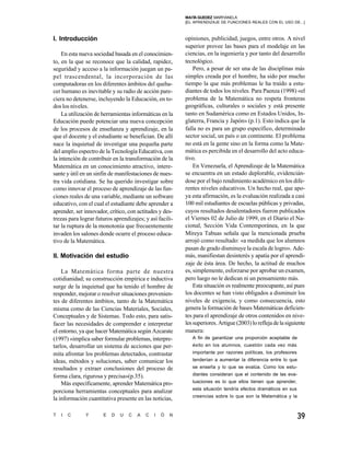 Este artículo describe una investigación sobre el aprendizaje de funciones reales utilizando un software educativo con estudiantes de educación en la Universidad de Los Andes Táchira. Se aplicó un pre-test y post-test a un grupo experimental que recibió clases con el software y un grupo de control con enseñanza tradicional. Los resultados mostraron un aumento significativo en las calificaciones del grupo experimental, lo que sugiere que el uso del software tuvo un impacto positivo en su aprendizaje de funciones reales.