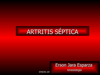 La artritis séptica es una infección bacteriana o viral de la articulación que causa inflamación, dolor y daño al cartílago. Es más común en niños pequeños y afecta con más frecuencia las rodillas, caderas y tobillos. Los síntomas incluyen fiebre, dolor severo en la articulación, hinchazón e incapacidad de mover la extremidad. El diagnóstico se realiza mediante el análisis del líquido sinovial y radiografías. El tratamiento consiste en antibióticos, dren