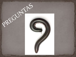 Los artrópodos son el grupo de animales más abundante y exitoso en la Tierra. Representan más del 75% de todas las especies animales, con los insectos constituyendo el 70-80% de los artrópodos. Los artrópodos incluyen insectos, arañas, escorpiones, garrapatas y ácaros. Tienen cuerpos segmentados protegidos por exoesqueletos y apéndices articulados como patas, piezas bucales y antenas.