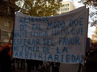 Este documento expresa la frustración de los suboficiales de las Fuerzas Armadas por los constantes cambios en las reglas y leyes que rigen su carrera profesional, así como la falta de respeto a sus derechos adquiridos. Señala que durante décadas se han pisoteado sus derechos relacionados con ascensos, edades de reserva y promoción interna. Pide simplemente equidad y que se respete el principio de no depender del favor o la arbitrariedad, derechos que se les han negado pese a solic